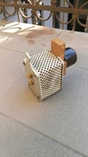 Valamikor több laborműszer kiegészítőnek ilyen perforált lemez burkolata volt, csak ráncosfekete.