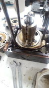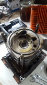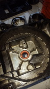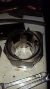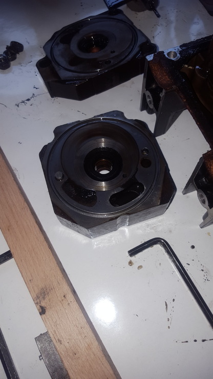 1. kép: 1.és 2. fokozatot elválasztó darab 1. fokozat felől nézve - az elszíneződött részen ami nem üreg, látszik némi törmelék, ezen a felületen látszik is kopás, sajnos a körmöm meg is akad benne. Remélem nem nagy baj, persze le lehetne köszörültetni pár századot... nem tudom merjem-e...
