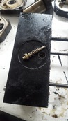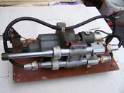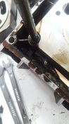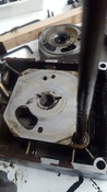 5: ezen az oldalon nem túl jól láthatók a furatok (lemez le lett csavarozva erről az oldalról - a tetejét is lebontottam, látható a dupla kiálló tüske ami a gumibakot elemelgető excentert forgatja, illetve a kis tiskó, amin befogja a furatot a gumibak.