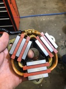 A kivezetések párhuzamosan vannak a motor U V W fázisira kötve. Most az eredeti állapot szerint színhelyesen kötöttem be, de a szakadt tekercset nem tudom megmérni, és el is küldtük újra tekercseltetni.