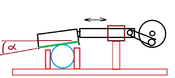 Piros az váz, az fix. Fekete a mozgó alkatrész, és kék a munkadarab. Jobb oldalon a hajtott tengely, baloldalt a fűrész keret. Zöld a fűrészlap.