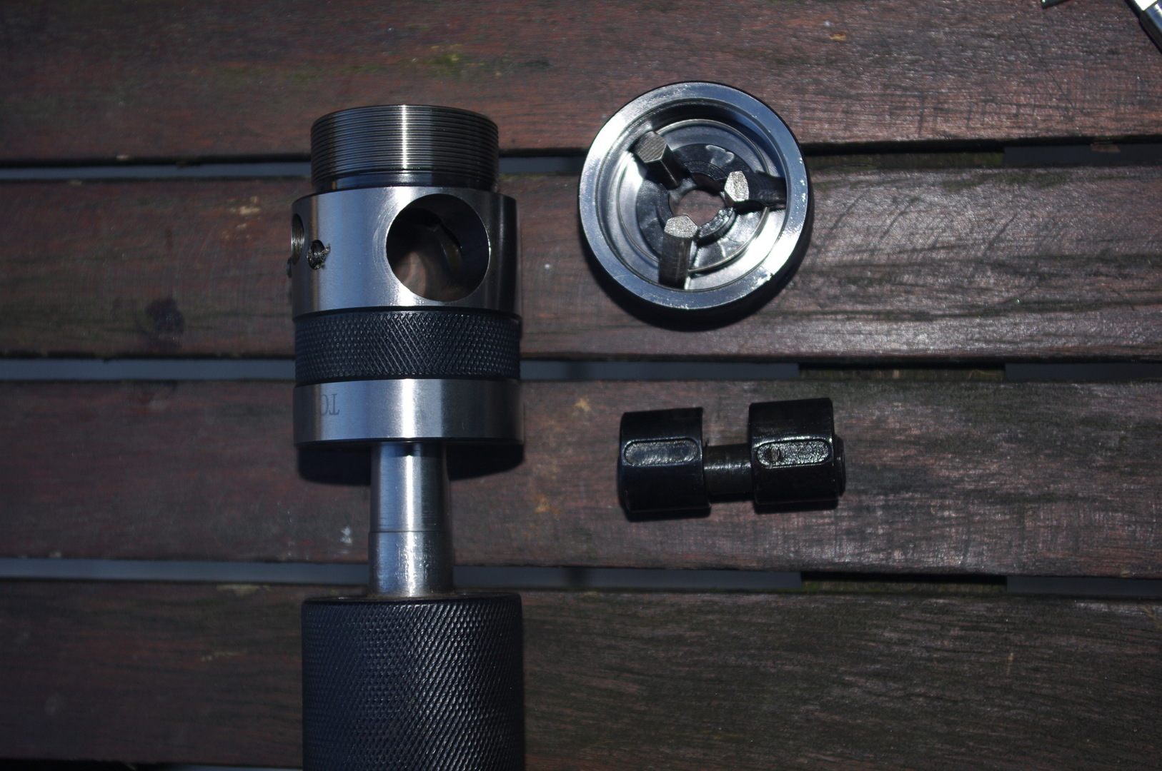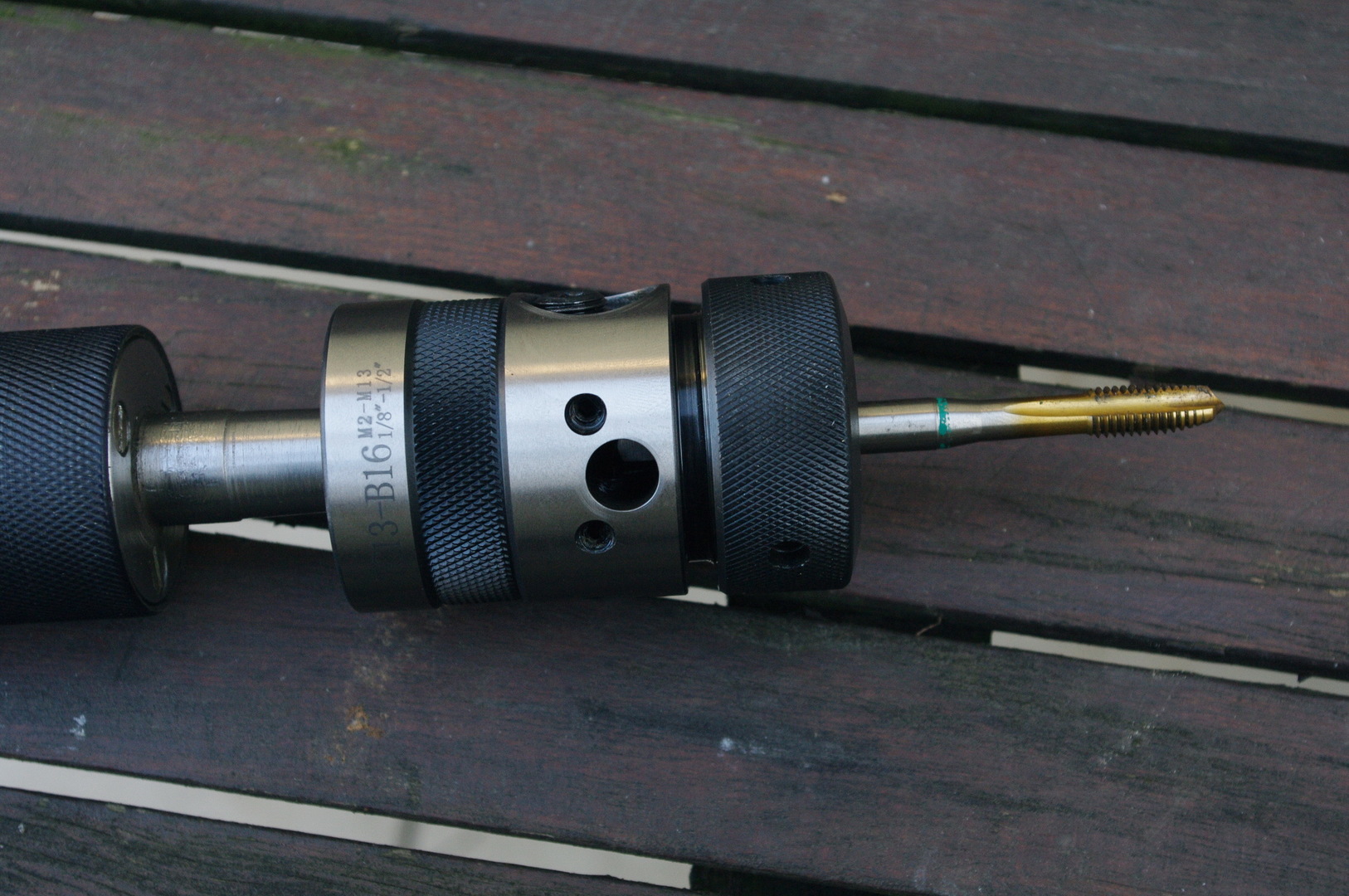 Egy szerintem ötletes kialakítású menetfúró tokmányt mutatok nektek. Sokkal egyszerűbb kialakítású mint amire számítottam. Ráadásul még tovább egyszerűsítve után gyártható is lehet. Pl a jobb/bal menetes orsó kiváltható egy sima imbusz csavarral így csak egy oldalon lenne menet de nem hiszem hogy nagy gondot okozna. A menetfúró szárát vezető tokmány rész is helyettesíthető egy menetes persely sorozattal amit házilag nem nehéz elkészíteni. Tulajdonképpen egy ügyes hobbista egy esztergán el tudja készíteni az egész fejet.