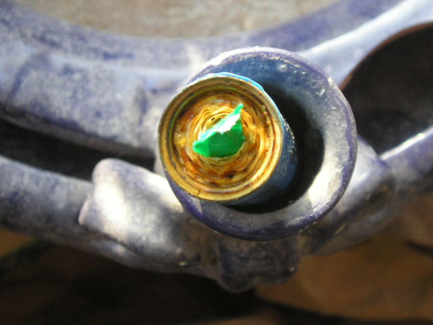 Feltehetően egy dolgos méhecske úgy gondolta, hogy a legjobb helye némi nemű virágporkivonatnak az én hegesztőm gyorscsatlakozójában lesz. A továbbiakra, azthiszem pneumatika csőből kreálok egy kupakot a gépre, amikor el van pakolva, ez kicsit kellemetlenül érintett.
