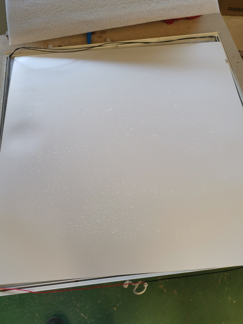 Àlmennyezetbe való LED panel. Nem birta a vizet.