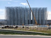 IdézÍgy készül egy teljesen automatizált raktár. Előbb épül a vasrács, azután a falak.