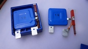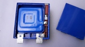 Ez a kivezetés forrasztottan csatlakozik a jobb oldali rugóval előfeszített piros műanyag kioldó hasábra.
