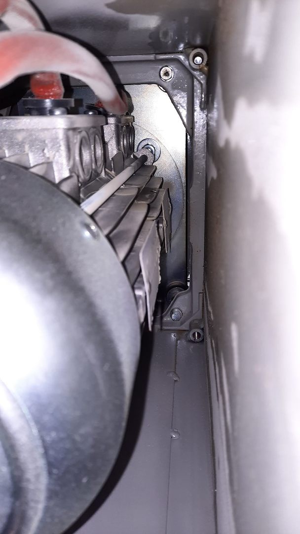 Sajnos annyira szűk a hely, hogy az adattáblákat nem tudom leolvasni/fényképezni. Az biztos, hogy a motor(ok) tengelyén egy lapos-szíj hatás van. A hajtott szíjtárcsa meg egy bolygóművet hajt meg. A keverőlapát egyfelől forog a saját tengelye körül, méfelől excetrikusan bolygómozgást is végez. A "kimenő" fordulatszámok szabványosak 140/62 ill. 285/125 (forgó/bolygó fordulat/perc). Azt a méltóságos Ejutól (vagy inkább az eredeti DIN szabvány alkotójától) kérdezzétek, hogy miért ennyi. [#nemtudom]