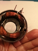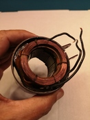 Azért nincs, mert az állórész másik végén van. De a 3. képen egész jól látszik, hogy tárcsa tekercs alatt van egy szigetelő lap és azalatt a két "normális" állórész tekercs.
