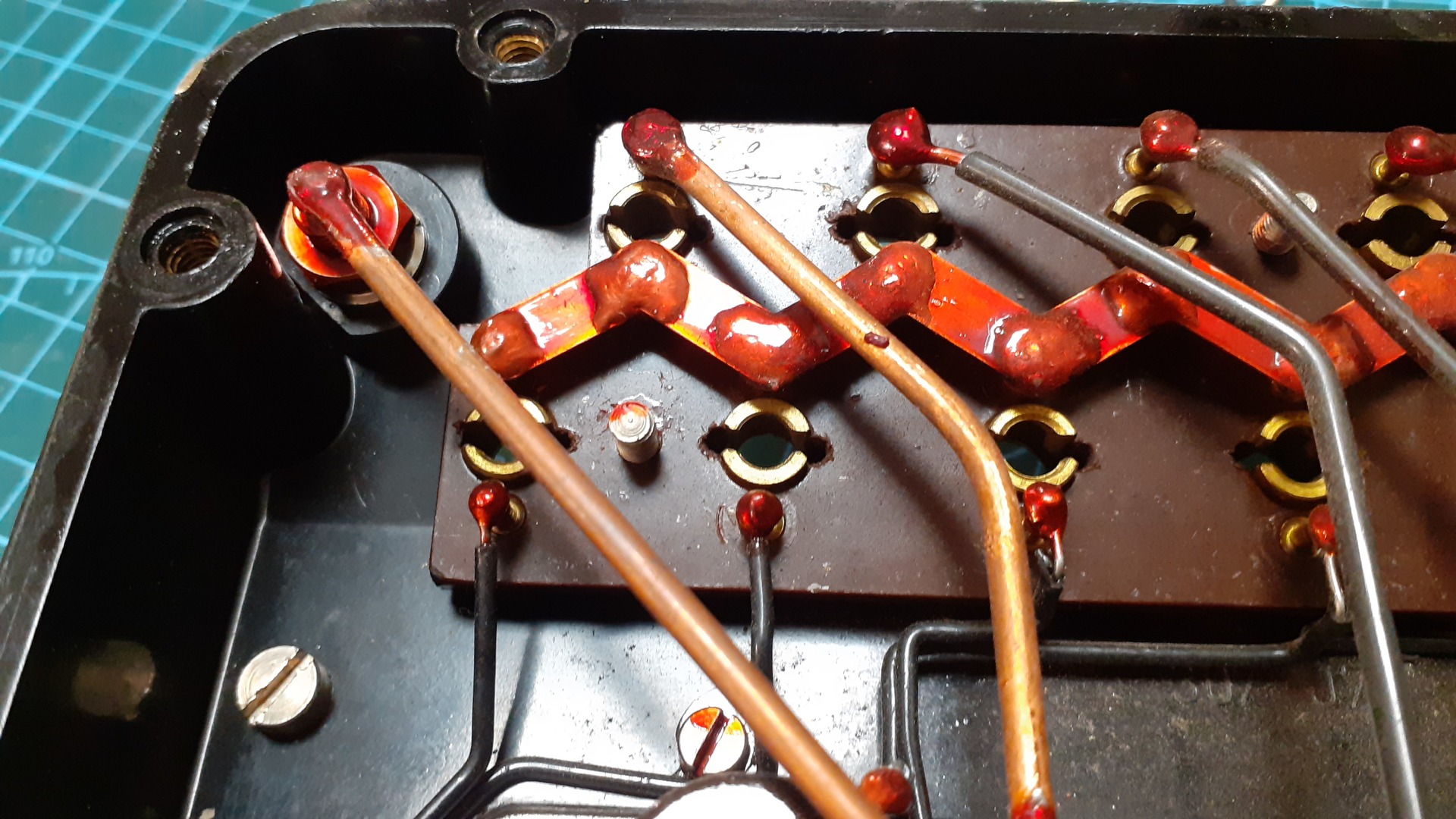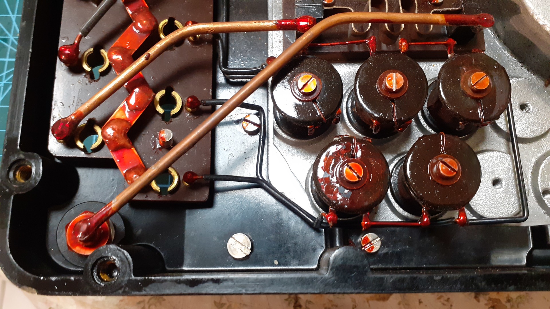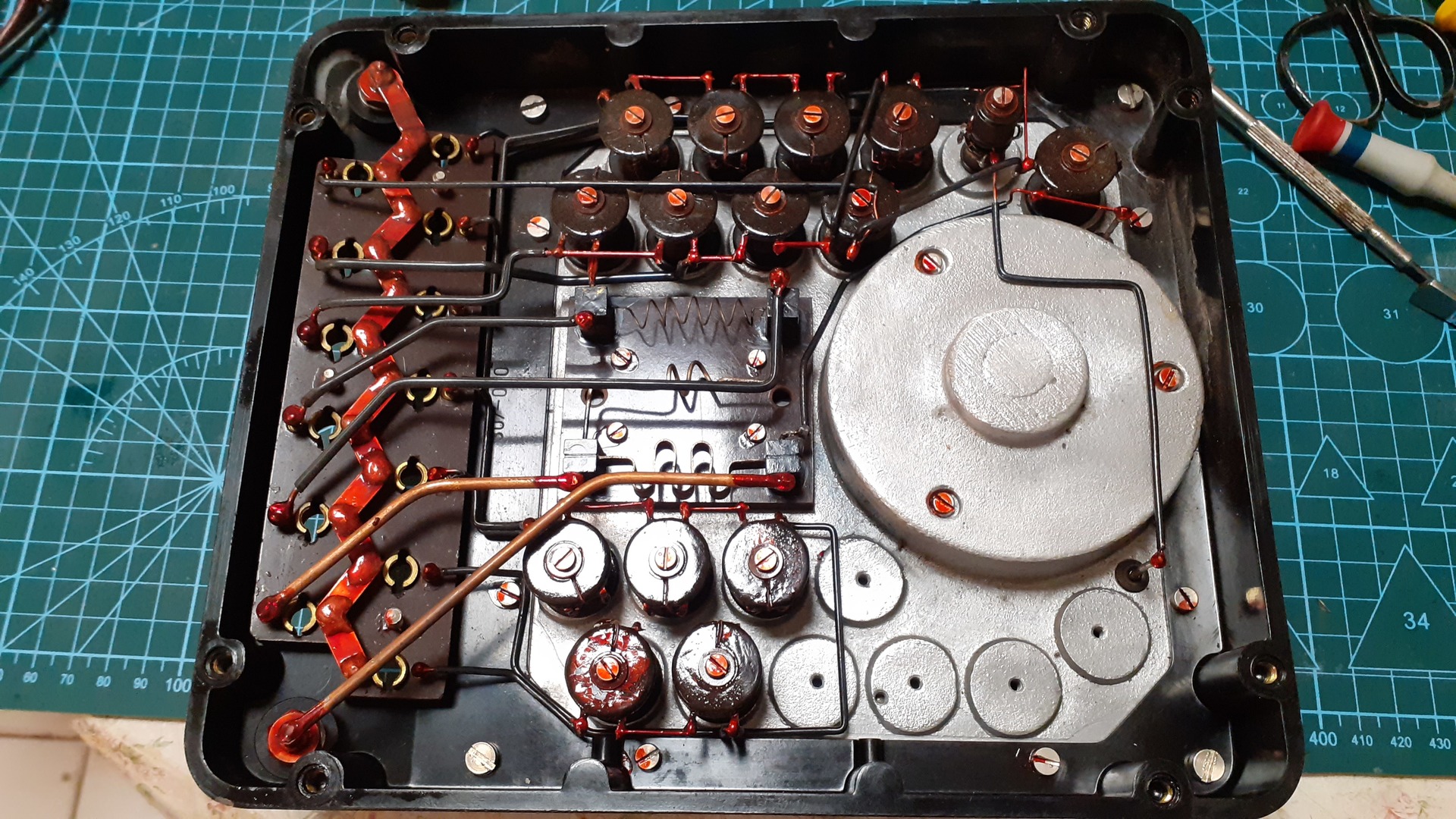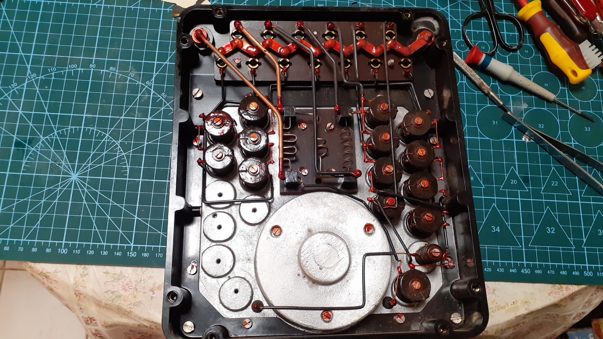 Még majd, -a két banánhüvely cseréje után- egy kis esztétikai "javítás" a fekete bakelit házon és...mehet a többiek közé a polcra. :)
