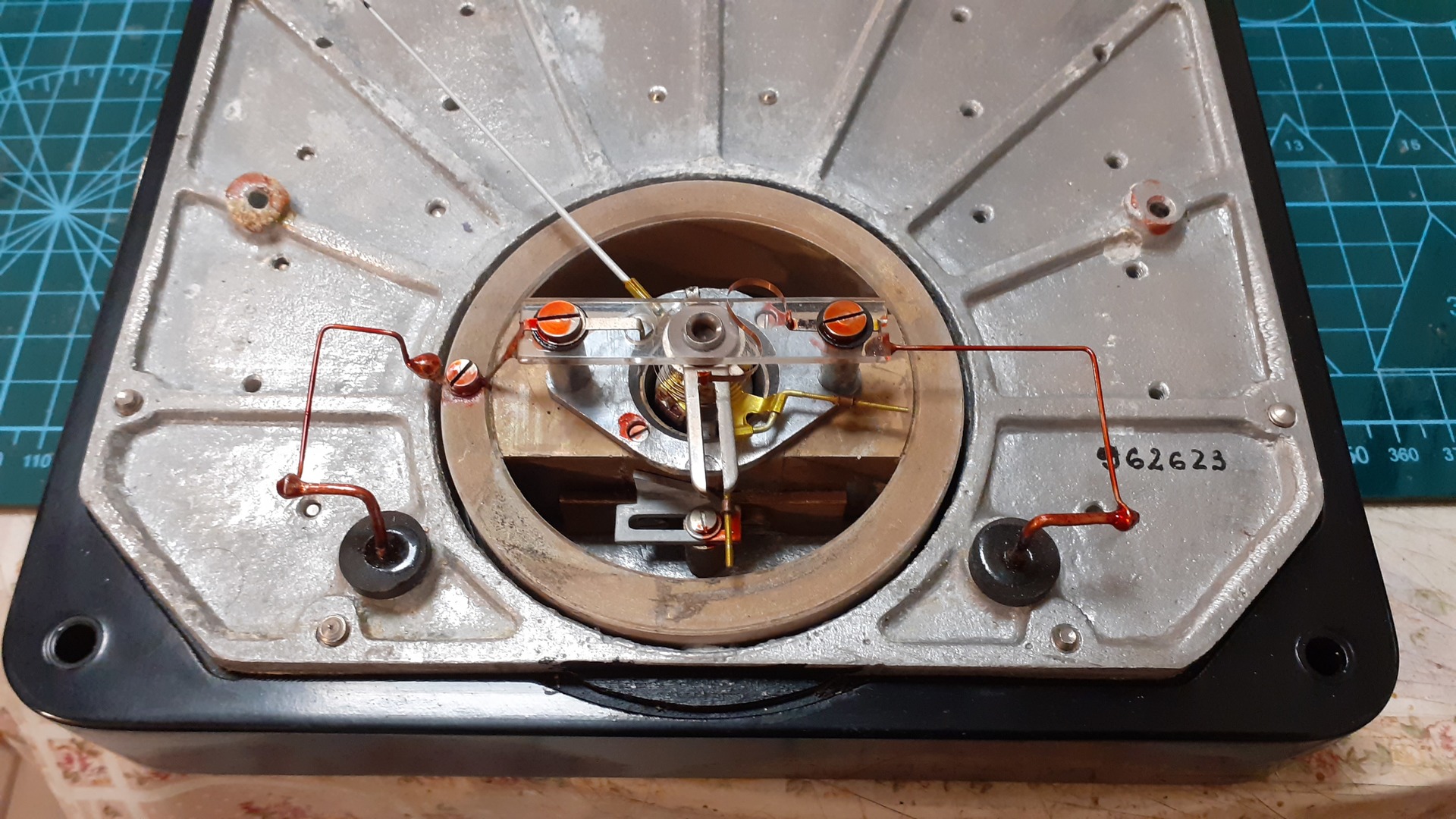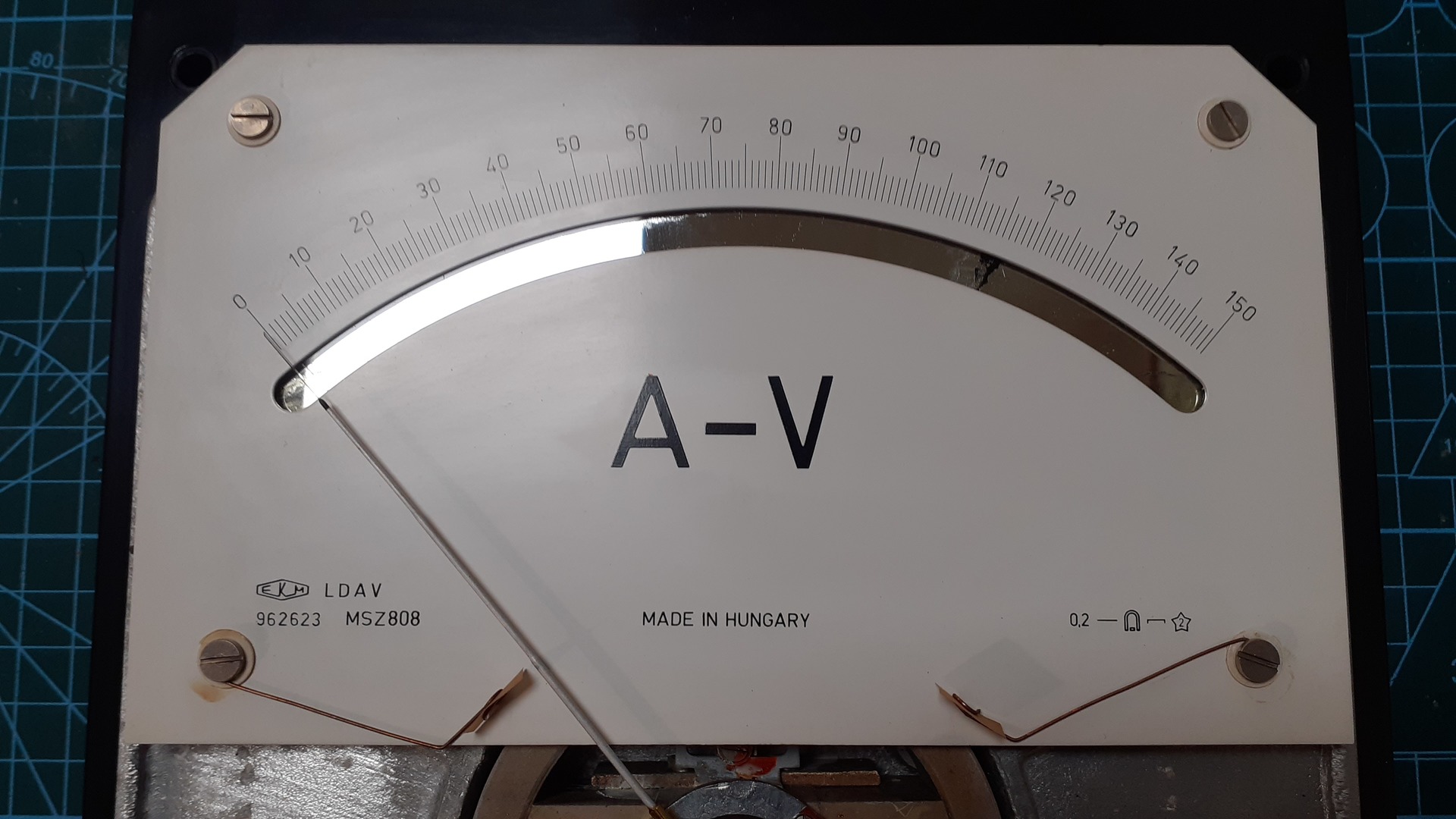 A mérőmű tükörskálás számlapjáról le/be volt esve a tükör, elengedte az eredeti ragasztása.