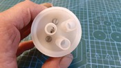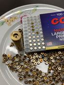A fotón látszik az elműködött csappantyú egyben és a már szétszedett csésze és az üllő, valamint az éles csappantyú is, illetve egy használt töltényhüvely.