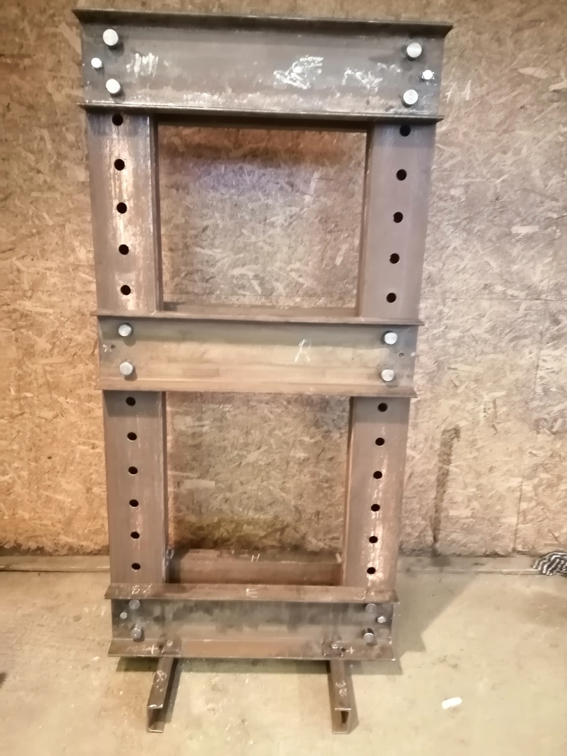 A függőlegesek 2 m hosszú, a kereszt 1 m.A hidraulika toligatható rajta.(Szükségem volt a belméretre.)